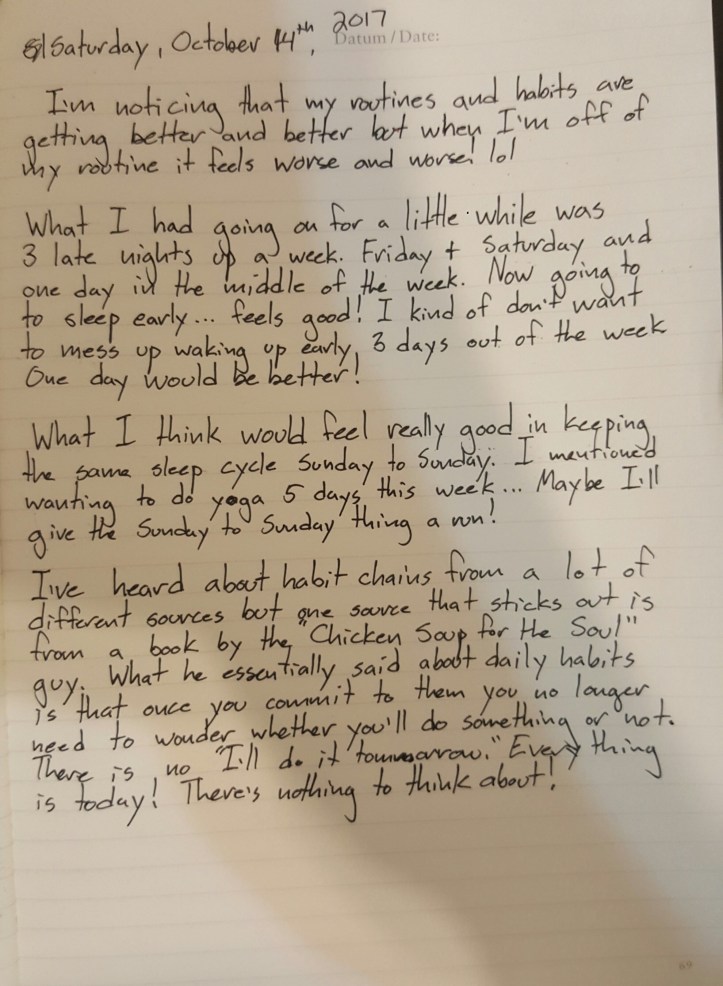 October 15, 2017January 27, 2022 Casey Abbott Payne Day 49 – The Perfect Week Attempt Habit chains: Meditation – 182 days Journaling – 75 days Art – 68 days Monetization – Day 41 Share this: Click to email a link to a friend (Opens in new window) Email Click to share on Bluesky (Opens in new window) Bluesky Click to share on WhatsApp (Opens in new window) WhatsApp Click to share on Threads (Opens in new window) Threads TweetMore Click to share on Mastodon (Opens in new window) Mastodon Click to share on Reddit (Opens in new window) Reddit Like Loading...