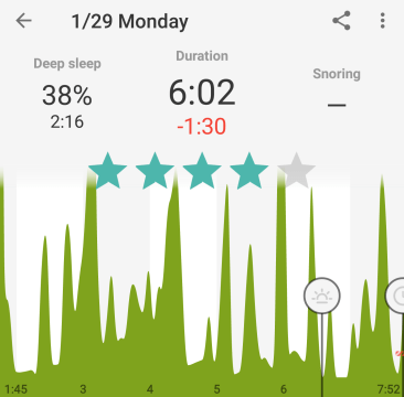 I think the big difference yesterday was how late I went to sleep, 2 am. Now that I understand sleep a little better from reading “Why We Sleep” I know that going to bed that late cut out a section of either REM (rapid eye movement) or NREM (non-rapid eye movement), both are important of course. Actually… I can check…