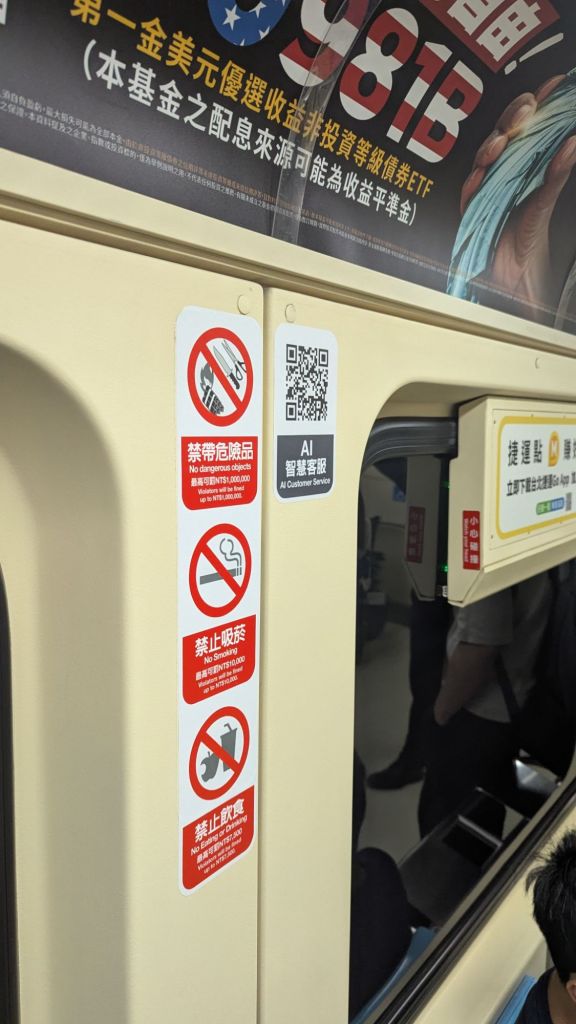 Speaking of AI. I saw AI out in the wild for the first time in the form of an announcement on the MRT (subway). I didn’t scan the QR code yet to see where it goes but I think the angle is such that you can if you’re interested. :)