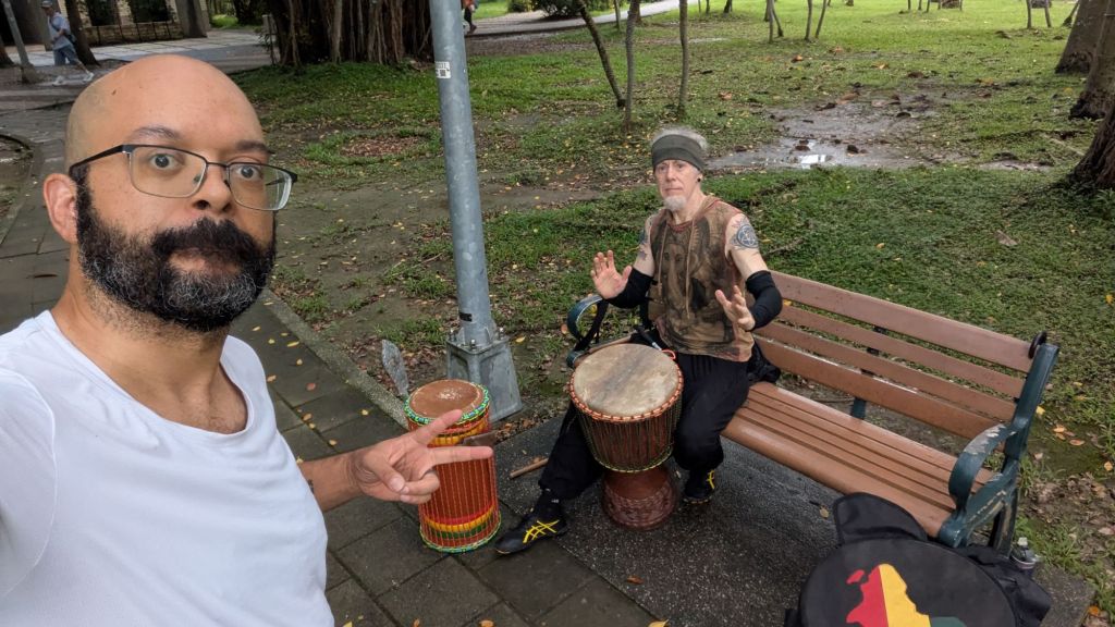 Anyhow… The djembe got dusted off! I met up with my drum teacher yesterday. We banged on drums. And I decided I’m going to help him get the weekly drum club poppin’. I had to teach him how a club gets started. Some HAS to be there EVERY WEEK and ON TIME. I’ve build many weekly clubs, and this is the secret sauce. You gotta be there EVERY WEEK by yourself, twiddling your thumbs, for a long time (sometimes). Why? People need to know that if the show up someone will be there. I think the tipping point for when you don’t need to show up every week is around 12 to 18, but that really depends on what kind of group it is. The number cound be significantly smaller or bigger. Anyhow, eventually a critical mass is hit where there’s always at least 3 to 5 people there. No one needs to check the Facebook or WhatsApp group. Everyone knows that every Sunday at 2 pm at Da’an Park, Casey and Imago will be there drumming. I even donated my drum to the cause for now. I was only going to show up once a month (because of the trek) and practice at home but… Show up to what?! I gotta make the what that I want to show up to!