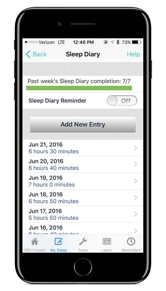 CBT-i Coach 3 Sleep Diary